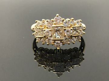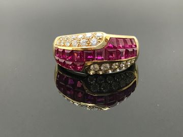 14k Yellow Gold, Rose Gold & Platinum Ring with Diamonds & Rubies
