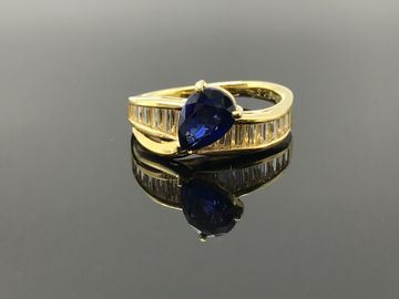 18k Yellow Gold 1.61ct Pear-Shaped Sapphire & Diamond Ring