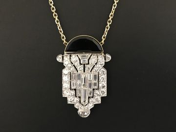 Platinum & 18k Yellow Gold Diamond & Black Onyx Pendant