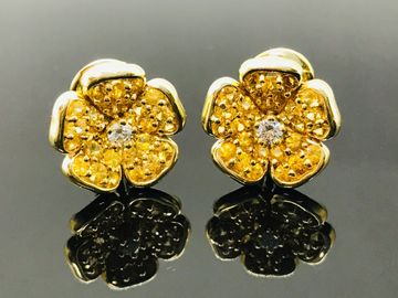 18k Yellow Gold Asprey 'Magnolia' Earrings with Yellow Sapphires & Diamonds