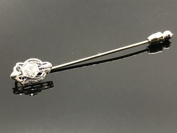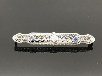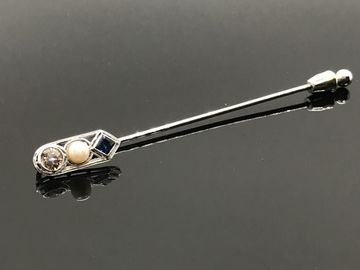 14k White Gold Pin with Diamond, Pearl & Sapphire