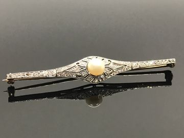 18k White Gold Brooch with Pearl & Rose Cut Diamonds