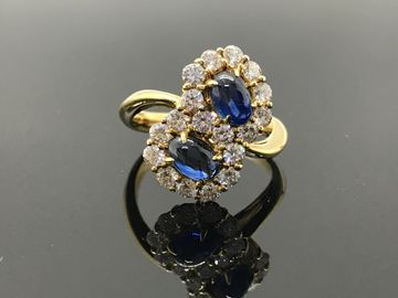 18k Yellow Gold Sapphire Cabochon & Diamond ByPass Ring
