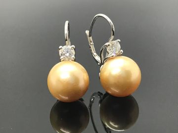 18k White Gold 14mm Golden South Sea Pearl & Diamond Earrings