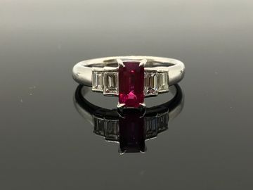 Platinum 1.05ct Emerald Cut Ruby & Diamonds