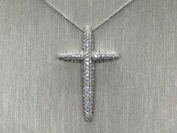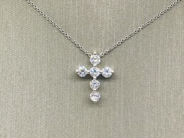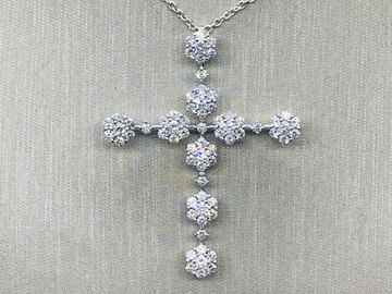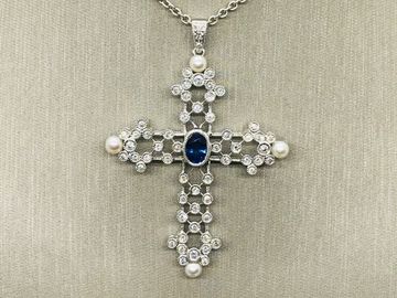18k White Gold Sapphire, Diamond & Pearl Cross Pendant