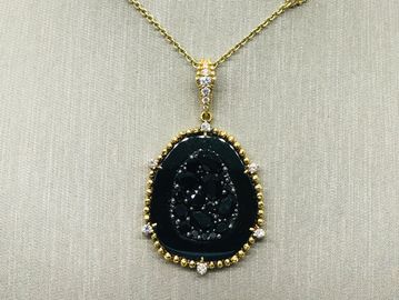 18k Yellow Gold Black Onyx, Diamond & Black Diamond Necklace
