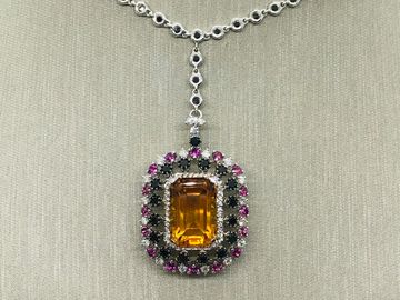 18k White Gold Citrine, Diamonds, Black Diamonds & Pink Sapphires