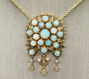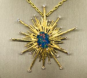 18k Yellow Gold Black Opal & Diamond Brooch& Pendant