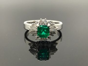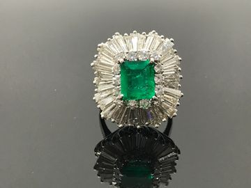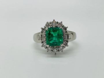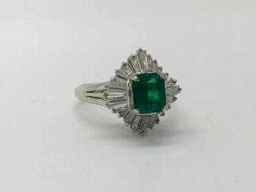 Platinum 1.88ct Emerald Cut Emerald & Diamond Ring