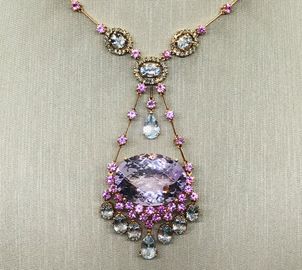 18k Pink Gold Necklace with Amethyst, Pink Sapphire & Aquamarine