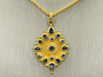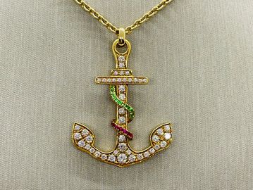 18kt Yellow Gold 'David Morris' Anchor Pendant with Diamonds & Sapphires