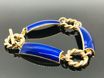 18k Yellow Gold & Blue Enamel Vintage Gucci Bracelet