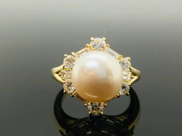 18k Yellow Gold Diamond & Pearl Mikimoto Ring