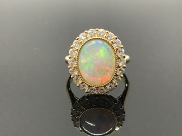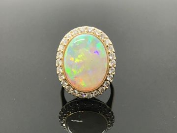 18k Yellow Gold 6.65ct Opal & Diamond Ring
