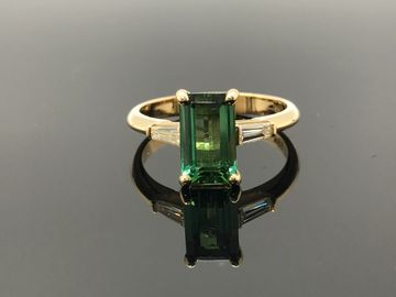 18k Yellow Gold Green Tourmaline & Diamond Baguette Ring