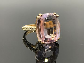 18k Yellow Gold 19.0ct Kunzite Ring with Diamond Band
