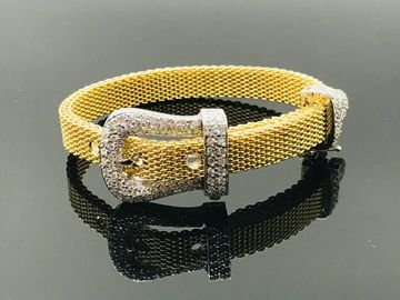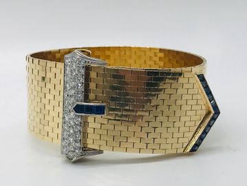 14k Yellow Gold 1940's Tiffany Brick Mesh Bracelet with Diamonds & Sapphires