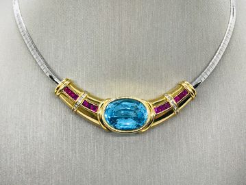 Blue Topaz & Rubies set in 18k Yellow Gold On An 18k White Gold Collar