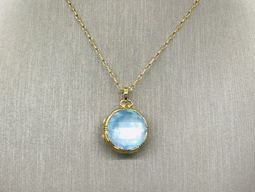 Blue Topaz On Mother Of Pearl Locket Set In 18k Yellow Gold On A 30-Inch Chain