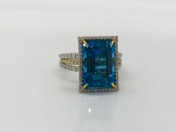Platinum & 18k Yellow Gold Ring with Blue Topaz & Diamonds