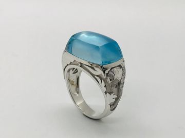 18k White Gold Magerit Ring with Blue Topaz Over Mother-Of-Pearl & Diamond Detail