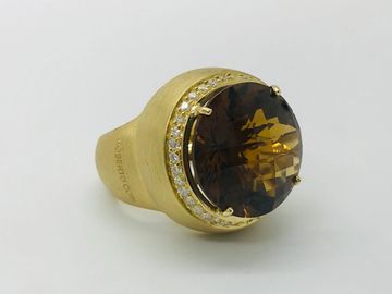 18k Yellow Gold Roberto Coin Ring with Citrine and Diamonds