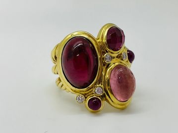 18k Yellow Gold David Yurman Estate Ring with Tourmaline, Rhodolite, Garnet & Diamonds