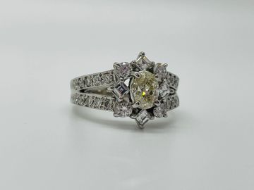 Platinum Diamond Ring with a Yellow Diamond Centre Stone