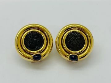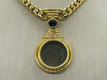 Roman Coins Set in 18kt Yellow Gold with Sapphire Cabochons