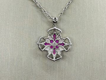 18kt White Gold Magerit Pendant with Pink Sapphires & Diamonds
