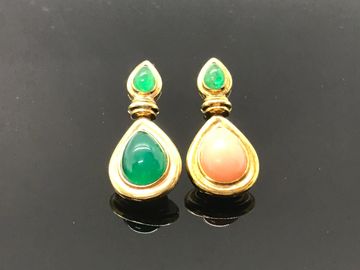 18k Yellow Gold Chrysoprase & Coral Reversible Drop Earrings