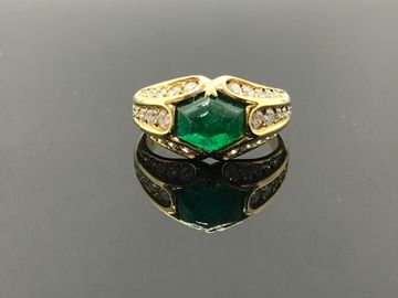 18k Yellow Gold 2.0ct SugarLoaf Cut Emerald & Diamond Ring