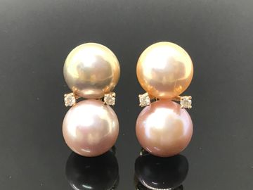 18k Yellow Gold Pink Pearl & Diamond Clip Earrings