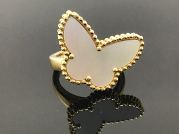 18k Yellow Gold Estate Van Cleef & Arpels Mother of Pearl Butterfly Ring