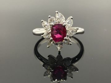 Platinum 1.06ct Oval Ruby and Marquise Diamond Ring