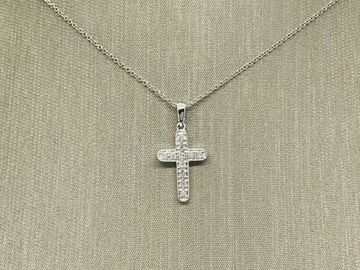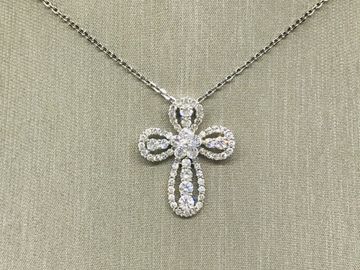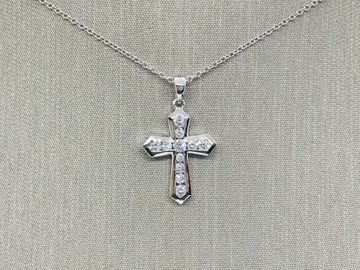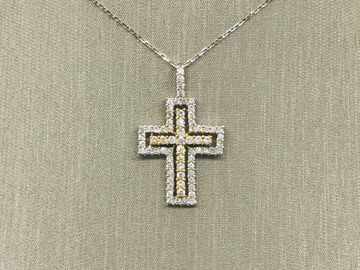 18k Yellow & White Gold Diamond Cross with Floating Diamond Halo