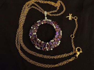 18k Yellow Gold, Natural Multicolor Gemstone Tennis Necklace