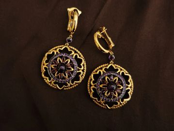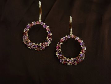 18k Yellow Gold Amethyst Rhodolite and Diamond Earrings by Casato